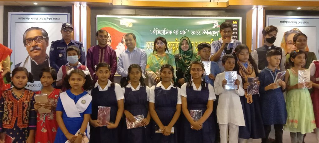 আওয়ামীলীগের সাংগঠনিক সম্পাদক ওয়াহিদ ইকবাল, পৌরসভার মেয়র সালমা আক্তার,উপজেলা ভাইস চেয়ারম্যান আজহারুল হক,শামীমা শ্রিপা,সহ অনেকেই।এসময় বঙ্গবন্ধুর ৭ই মার্চের ভাষণ,কবিতা আবৃত্তি,নৃত্য,ও দেশাত্মবোধক গান শেষে বিজয়ীদের মাঝে পুরস্কার বিতরণ করা হয়েছে।