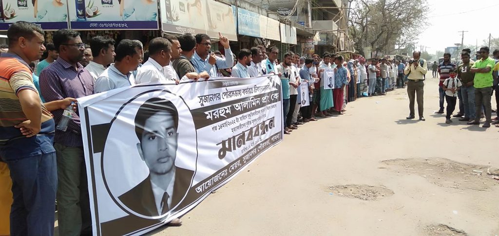 সুজানগর পৌরসভার কর্মচারী আল আমিনের হত্যার বিচারের দাবীতে বিক্ষোভ ও মানববন্ধন