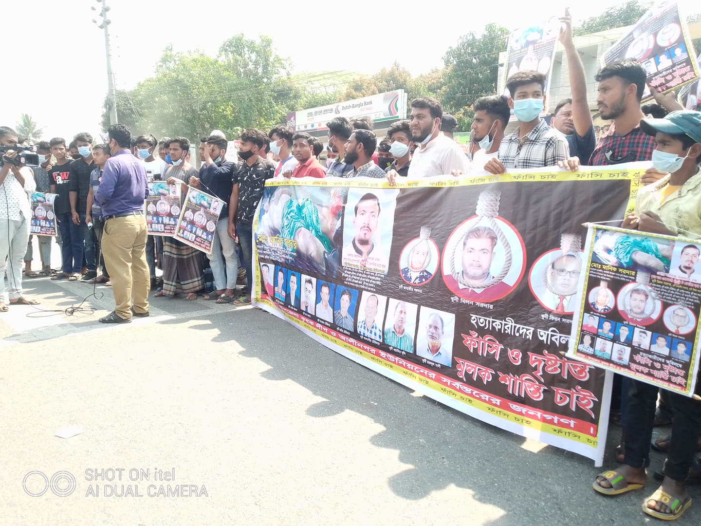 মাদারীপুর জেলা প্রশাসক কার্যালয়ের সামনে রোববার (২০ মার্চ) বেলা ১১টার দিকে মানববন্ধন করেন তারা। এরপর মাদারীপুর-শরীয়তপুর শেখ হাসিনা সড়ক অবরোধ করেন তারা। গত ৭ ফেব্রুয়ারি কালকিনি উপজেলা কৃষক লীগের কৃষিবিষয়ক সম্পাদক মানিক সরদারকে ডেকে নিয়ে কুপিয়ে হত্যার অভিযোগ ওঠে আলীনগর ইউনিয়নের সাবেক চেয়ারম্যান হাফিজুর রহমান ওরফে মিলন সরদারের বিরুদ্ধে।