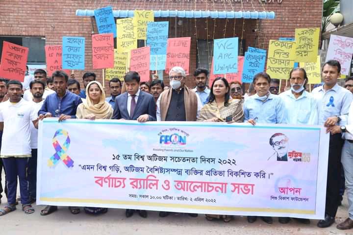 ‘‘এমন বিশ্ব গড়ি, অটিজম বৈশিষ্ট্যসম্পন্ন ব্যক্তির প্রতিভা বিকশিত করি’’ এই স্লোগানকে সামনে রেখে শনিবার সকালে ঢাকা রিপোর্টার্স ইউনিটির সামনে থেকে একটি র্যালি বের হয় এবং বিভিন্ন সড়ক প্রদক্ষিণ করে বাংলাদেশ শিল্পকলা একাডেমির সামনে গিয়ে সংক্ষিপ্ত পথসভায় মিলিত হয়। এসময় উপস্থিত ছিলেন, সাবেক স্বরাষ্ট্র প্রতিমন্ত্রী শামসুল হক টুকু এমপি, সিরাজগঞ্জ-২ আসনের সংসদ সদস্য ডা: মো: হাবিবে মিল্লাত, সংরক্ষিত নারী সংসদ সদস্য আদিবা আনজুম মিতা, আপন শিশু বিকাশ ফাউন্ডেশনের চেয়ারম্যান ড. সুলতানা রাজিয়া , দৈনিক বজ্রশক্তির সম্পাদক এসএম সামসুল হুদা প্রমুখ। অনুষ্ঠানে বক্তারা বলেন, অটিস্টিক শিশুদেরকে সুস্থ স্বাভাবিক জীবন যাপনে সমাজের প্রতিটি মানুষকে এগিয়ে আসতে হবে। তাদের মাঝে লুকায়িত প্রতিভার বিকাশে ভালো...
