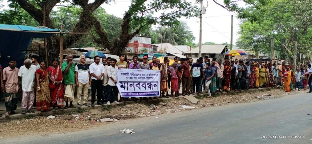মুকসুদপুরে সরকারি অধিগ্রহনের বাহিরে ২০০ দোকান উচ্ছেদের বিরুদ্ধে ভুক্তভোগীদের মানববন্ধন