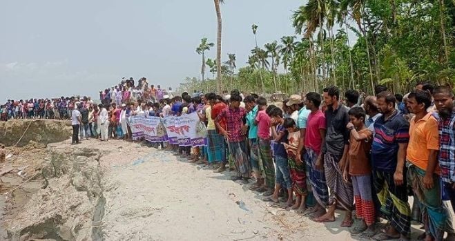লক্ষ্মীপুরে মেঘনা নদী ভাঙন প্রকল্পের কাজ বন্ধের প্রতিবাদে মানবন্ধন
