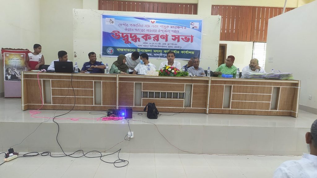 মাদারীপুরের রাজৈরে দেশীয় প্রজাতির মাছ এবং শামুক সংরক্ষন ও উন্নয়ন প্রকল্পের আওতায় উদ্বুদ্ধকরন সভা অনুষ্ঠিত হয়েছে। বৃহস্পতিবার উপজেলা আছমত আলী খান মিলনায়তনে এ সভার আয়োজন করা হয়।