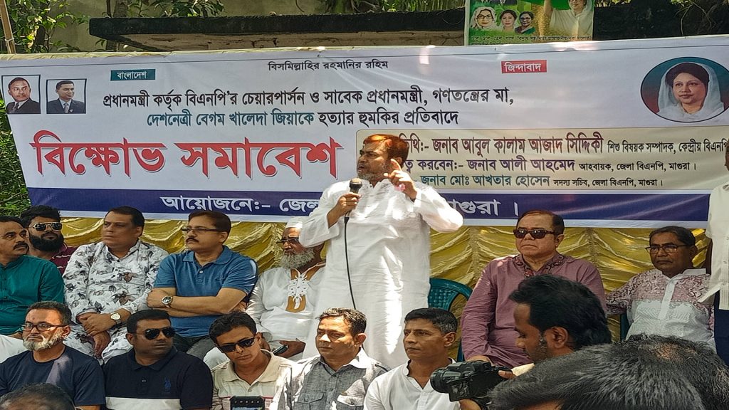 মাগুরায় বেগম খালেদা জিয়াকে হত্যা ও কটূক্তির প্রতিবাদে বিএনপির বিক্ষোভ সমাবেশ