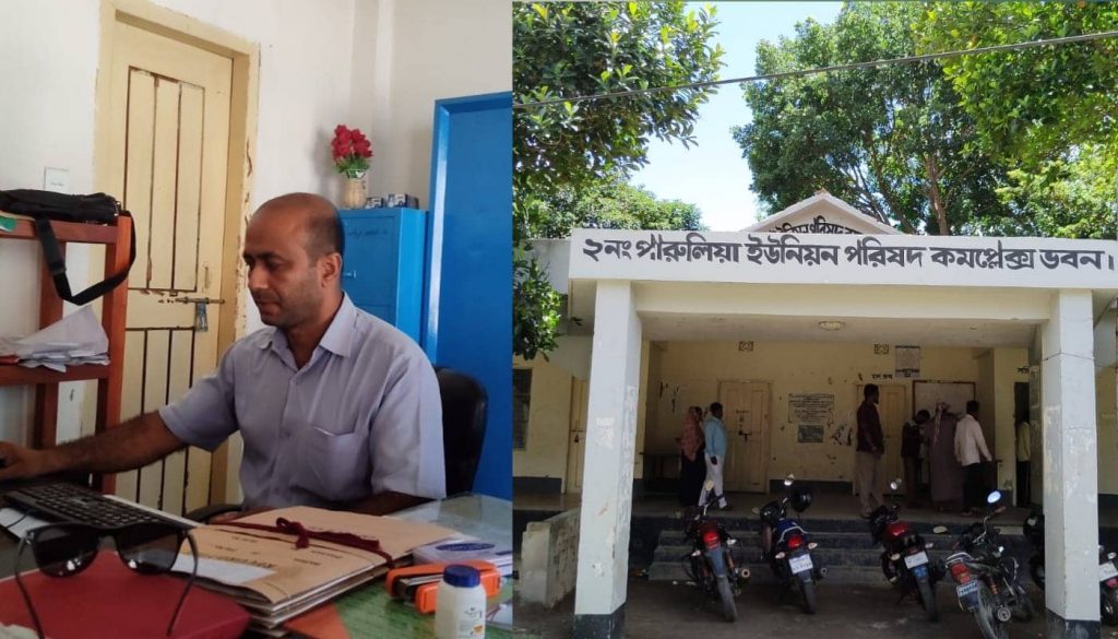 তিনি বিষয়টি দেখবেন বলে আশ্বাস দিয়েছেন। পারুলিয়া ইউনিয়ন পরিষদের ১নং ওয়ার্ড সদস্য আহম্মেদ মোল্যা ও ২নং ওয়ার্ড সদস্য মো: নজরুল ইসলাম বলেন, পারুলিয়া ইউনিয়ন পরিষদের চেয়ারম্যান শফিকুল ইসলাম শাওন পরিষদে এসেই সচিব মহোদয়ের রুমে আসেন। এসময় আমরা তাকে সালাম দেই।