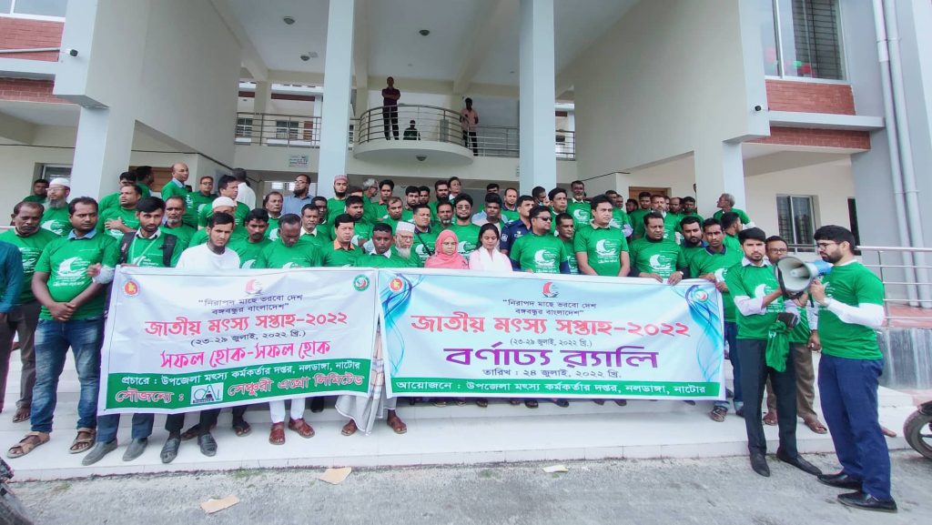 এর মধ্যে দিয়ে জাতীয় মৎস্য সপ্তাহের শুভ উদ্বোধন অনুষ্ঠিত হয়। জাতীয় মৎস্য সপ্তাহ ২৩ জুলাই হতে ২৯ জুলাই,২০২২ইং পযন্ত চলবে। টেলিকনফারেন্স এর মাধ্যমে জাতীয় মৎস্য সপ্তাহের আনুষ্ঠানিক ভাবে শুভ উদ্বোধন ঘোষণা করেন প্রধান অতিথি, (নাটোর-নলডাঙ্গা)-২ আসনের সংসদ সদস্য শফিকুল ইসলাম শিমুল।