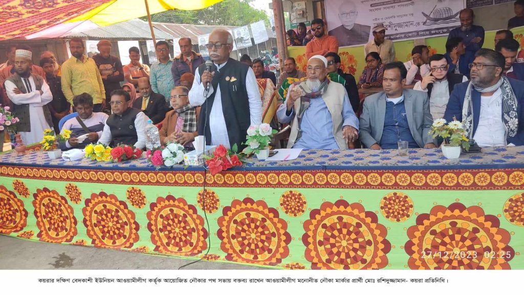 ২৬ ডিসেম্বর মঙ্গলবার সকাল ন’টায় নৌকার প্রার্থী মোঃ রশিদুজ্জামান মোড়লকে সাথে নিয়ে কয়রা উপজেলা আওয়ামী লীগের সভাপতি জিএম মহাসিন রেজা ও সাধারণ সম্পাদক নিশিত রঞ্জন মিস্ত্রির নেতৃত্বে উপজেলা আওয়ামী লীগের একটি দল উপজেলা সদর থেকে বের হয়ে প্রথমে উত্তর বেদকাশী ইউনিয়নের কাটকাটা এলাকার জনসাধারণের সাথে মতবিনিময় করেন।