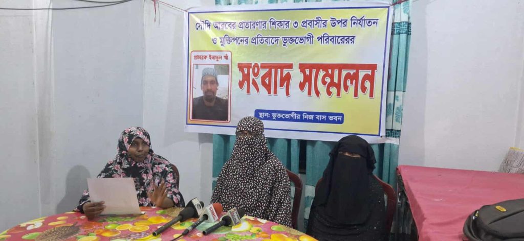 সংবাদ সম্মেলনে ভুক্তভোগীরা বলেন, আকামা বিহীন আদম ব্যবসার মূল হোতা প্রতারক এনামুল খা ও তার স্ত্রী শিল্পী বেগম আমাদের কাছ থেকে বিদেশে পাঠানোর নামে হাতিয়ে নিয়েছেন লক্ষ লক্ষ টাকা। বিদেশে নিয়ে সেখানে তাদেরকে বৈধ আকামা এবং কোন কাজের সন্ধান না দিয়ে মরুভূমিতে আটক রেখে অমানবিক নির্যাতন চালাচ্ছে। “দারিদ্রতা দূর করতে এবং সংসারে সচ্ছলতা ফেরাতে বিদেশে গিয়ে কাজের কোন বিকল্প নেই” অবৈধ আদম ব্যবসায়ী এনামুল খা -এর এ মিথ্যা প্রলোভনে পড়ে আজ আমরা সর্বস্বান্ত হয়েছি। আমরা তার কথায় আমাদের সন্তান এবং স্বামীদেরকে শেষ সহায়- সম্বল, জমি-জমা বিক্রি সহ ধার -দেনা করে সৌদি আরবে পাঠানোর জন্য প্রতারক এনামুল খা’র নিকট লক্ষ লক্ষ টাকা প্রদান করেছি। সে আমাদের সন্তান ও স্বামীদেরকে সৌদি আরবে পাঠালেও সেখানে তাদেরকে বৈধ আকামা ও কাজের কোন সন্ধান দেয়নি। বর্তমানে তারা মরুভূমিতে অমানবিক নির্যাতনের শিকার ও মানবেতর জীবন-যাপন করছে। আমরা এনামুল খা ও তার স্ত্রীর নিকট গিয়ে আমাদের সন্তান ও স্বামীদের বৈধ আকামা প্রদান এবং কাজের সুযোগ করে দিতে বললে তারা আমাদেরকে বিভিন্ন হুমকি-ধমকি দেয়। অভিযুক্ত এনামুল খা গোপালগঞ্জ সদর উপজেলার পাইকান্দি ইউনিয়নের চর পুখুরিয়া গ্রামের মৃত তৈয়ব খা’র ছেলে। বর্তমানে সে দেশেই রয়েছে। যে কোন সময় এই প্রতারক সৌদি আরবে পালিয়ে যাবে। সেখানে আমাদের স্বামী ও সন্তানদের বৈধ আকামা ও কাজের সংস্থান না করে দিতে পারলে তাদেরকে উদ্ধার করে দেশে ফিরিয়ে আনার ব্যবস্থা করা হোক। এছাড়াও প্রতারক এনামুল খা এবং তার স্ত্রীকে দ্রুত গ্রেপ্তার করে আমাদের নিকট থেকে নেওয়া সমুদয় অর্থ ফিরে পেতে সহায়তা করা সহ তার বিরুদ্ধে কঠোর আইনি ব্যবস্থা নিতে জোর দাবি জানাচ্ছি। সে যেন আর কারো সাথে বিদেশ পাঠানোর নামে ভয়াবহ প্রতারণা না করে আর কোন পরিবার যেন সর্বস্বান্ত না হয়।