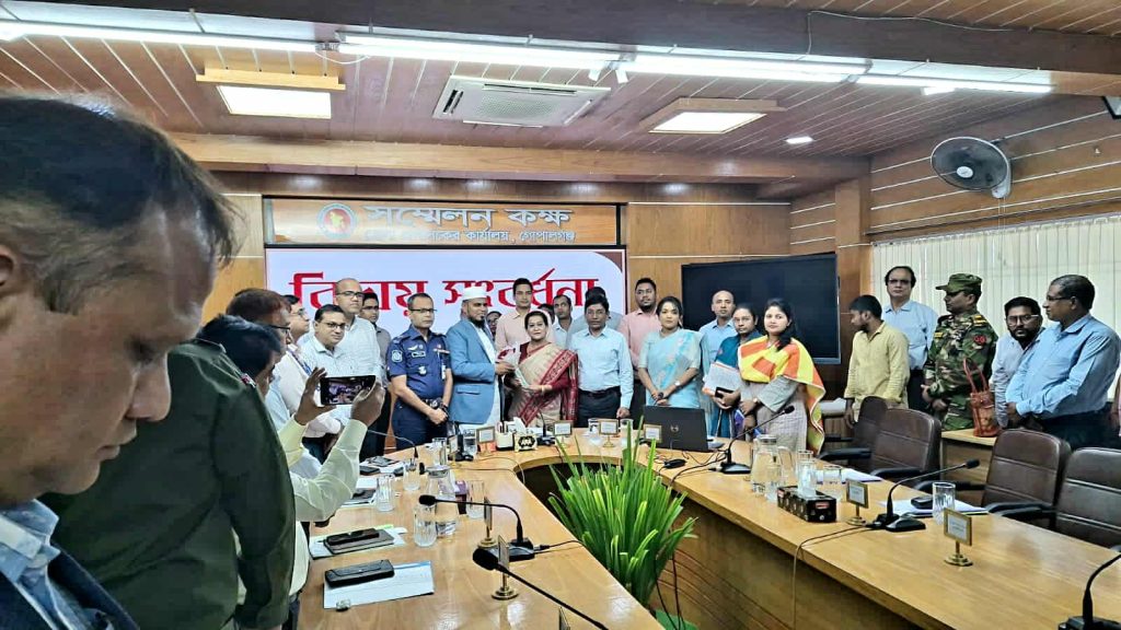 গোপালগঞ্জ জেলা প্রশাসনের আয়োজনে আজ রোববার (৯ নভেম্বর) বেলা সাড়ে ১১ টায় জেলা প্রশাসকের সম্মেলন কক্ষ স্বচ্ছতা’য় আয়োজিত এ সভায় সভাপতিত্ব করেন জেলা প্রশাসক ও বিজ্ঞ জেলা ম্যাজিস্ট্রেট মুহম্মদ কামরুজ্জামান (যুগ্মসচিব)।