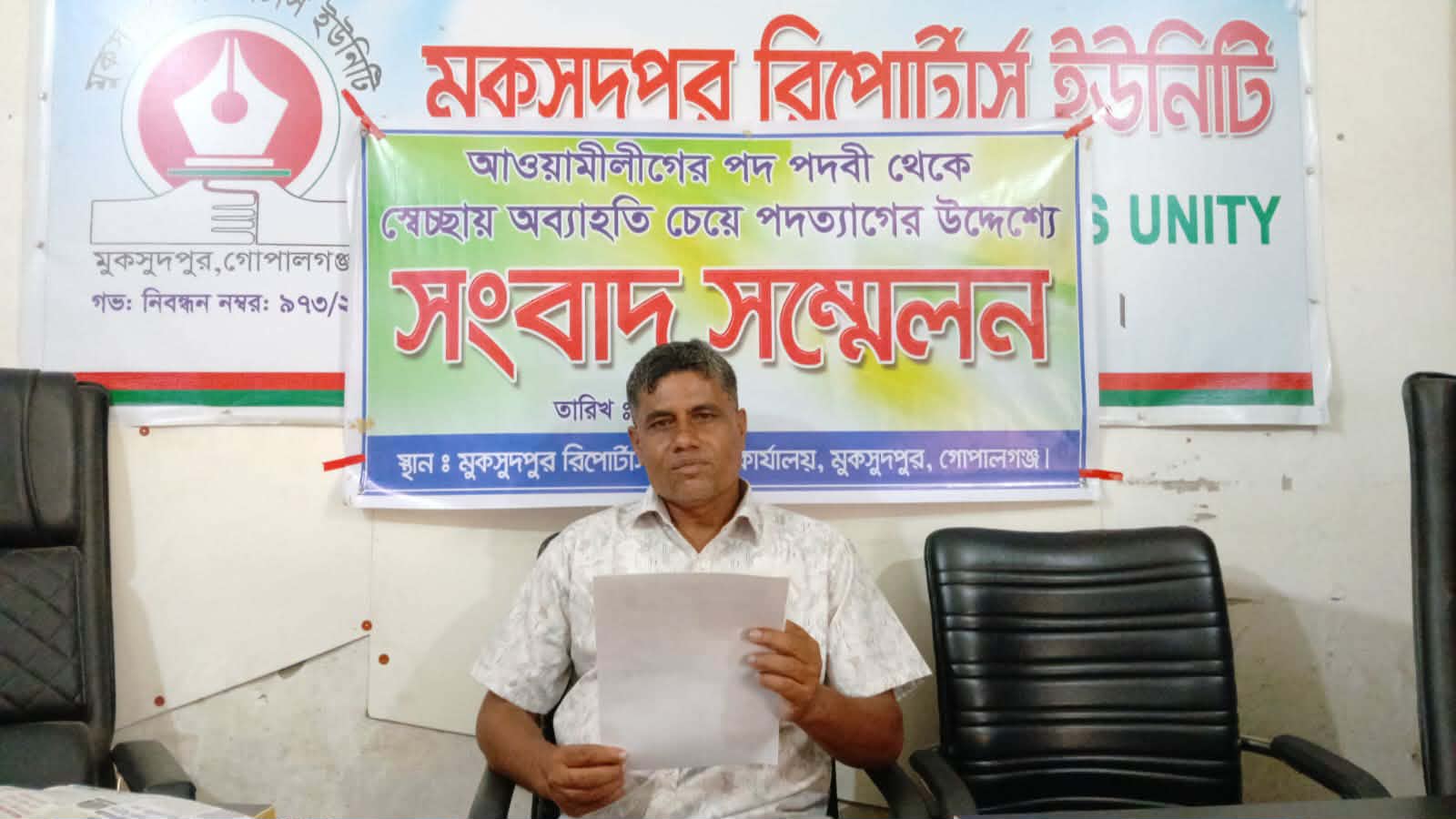 মুকসুদপুরে সংবাদ সম্মেলন করে আ’লীগ নেতার পদত্যাগ