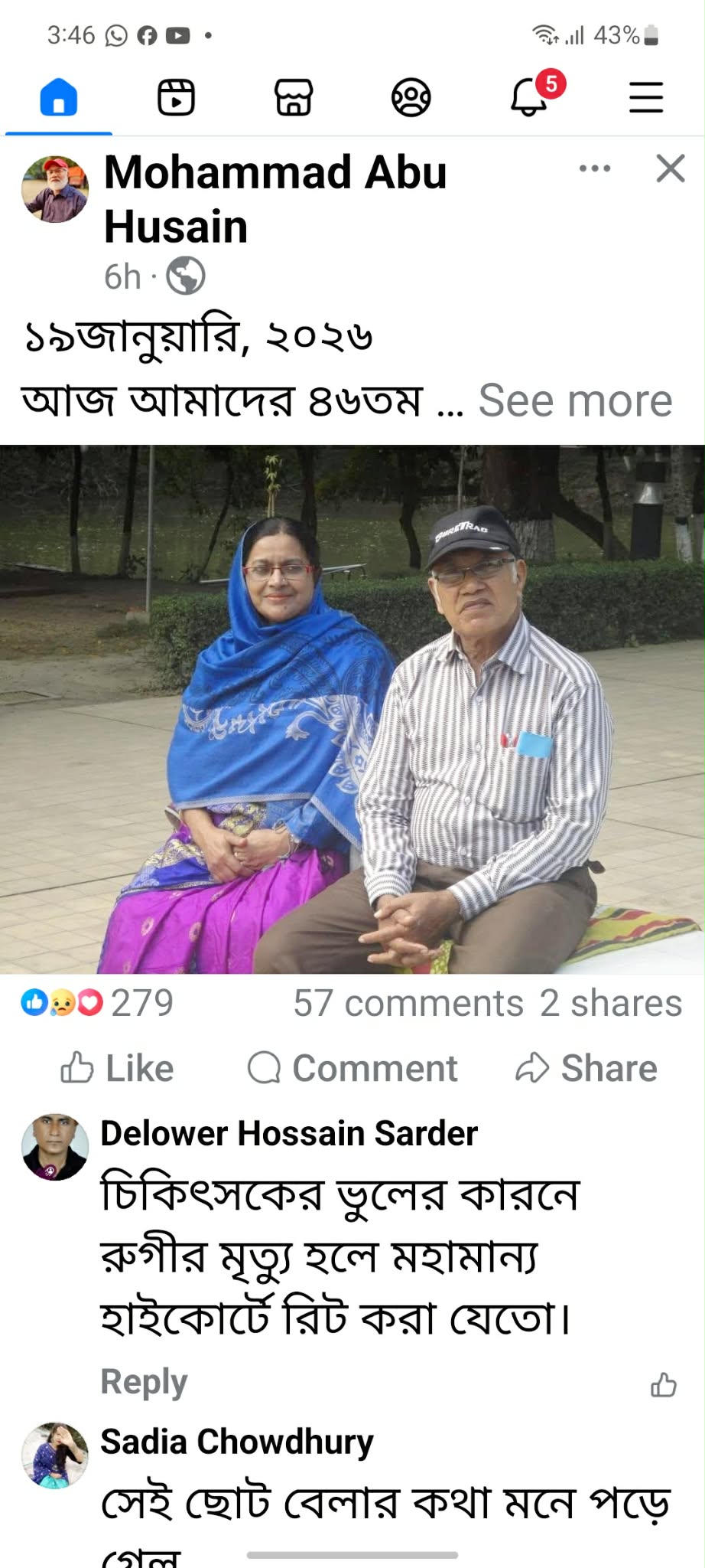 চিকিৎসকের ভুল চিকিৎসায় স্ত্রী’র মৃত্যু, বিবাহ বার্ষিকী উপলক্ষে বীর মুক্তিযোদ্ধা স্বামীর আবেগঘন পোস্ট