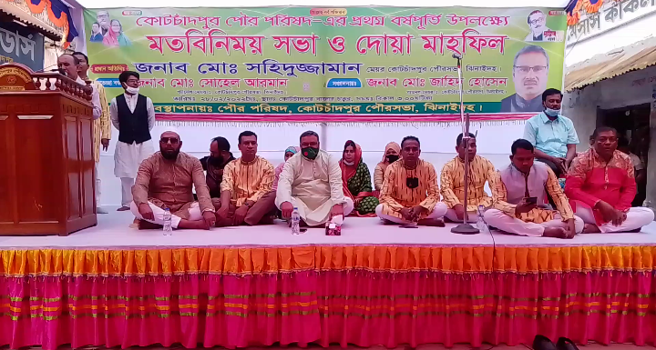 ঝিনাইদহ কোটচাঁদপুরে পৌর পরিষদের এক বছর বর্ষপূর্তি উদযাপন উপলক্ষে (২৮ শে- ফেব্রুয়ারী) সোমবার বিকালে মেইন- বাজার চত্বর পৌর যুবলীগের প্রধান কার্যালয়ের সামনে এক মতবিনিময় সভা ও দোয়া মাহফিল আয়োজন করা হয়।