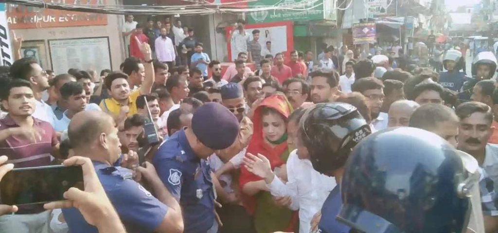 বহস্পতিবার মাদারীপুর জেলা বিএনপির আহবায়ক এ্যাডঃ জাফর আলী মিয়ার সভাপতিত্বে ও যুগ্ম- আহবায়ক এ্যাডঃ জামিনুর হোসেন মিঠুর পরিচালনায় বিকাল সাড়ে ৪ টায় পুরানবাজার মেলবোর্ন প্লাজায় অনুষ্ঠিত বিক্ষোভ সমাবেশে প্রধান অতিথি হিসাবে উপস্থিত থেকে বক্তব্য রাখেন রাজপথের অগ্নিকন্যা ও বিএনপি নির্বাহী কমিটির সাংগঠনিক সম্পাদক শামা ওবায়েদ ইসলাম।