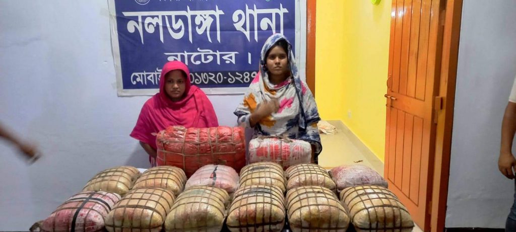 নাটোরে ৫২ কেজি গাঁজাসহ নীলা বেগম এবং সোনালী বেগম নামের দুই নারী মাদক ব্যবসায়ীকে আটক করেছে পুলিশ। গতকাল(৬ জুন) সোমবার সন্ধ্যা সাড়ে ৬ টার দিকে সদর উপজেলার তেলকুপি এলাকা থেকে তাদের আটক করে নলডাঙ্গা থানা পুলিশ। নীলা বেগম সদর উপজেলার তেলকুপি গ্রামের আমির আলীর মেয়ে এবং সোনালি বেগম একই এলাকার সুমন প্রামাণিকের মেয়ে ও সাগর মোল্লার স্ত্রী।