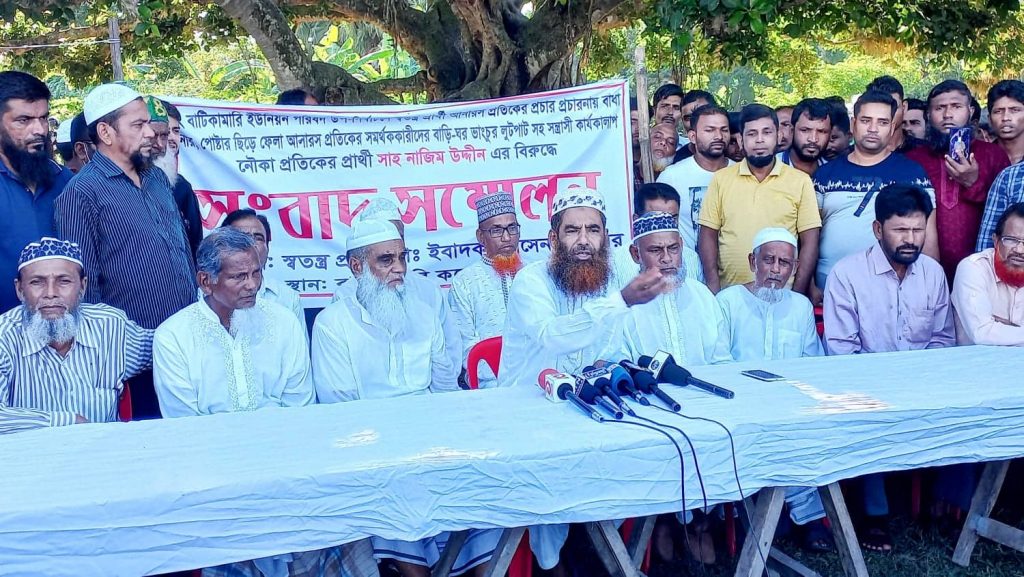 গোপালগঞ্জের মুকসুদপুর উপজেলার ৯নং বাটিকামারী ইউনিয়ন পরিষদের উপনির্বাচনে স্বতন্ত্রপ্রার্থী মো. ইবাদত মাতুব্বরের প্রচার-প্রচারণায় বাঁধা দেওয়া, ব্যানার পোস্টার ছিঁড়ে ফেলা, কর্মী-সমর্থকদের বাড়ি ঘর ভাংচুর ও লুটপাটের অভিযোগ করে প্রার্থীর পক্ষে সংবাদ সম্মেলন করেছে হাজী রফিকুল ইসলাম মাছুদ।