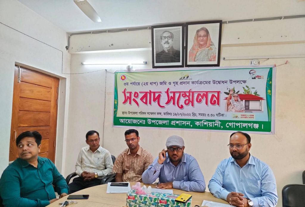 ভুমিহীন ও গৃহহীন পরিবারকে জমি ও গৃহ প্রদান কার্যক্রম বিষয়ে আজ মঙ্গলবার বিকেলে কাশিয়ানীতে সংবাদ সম্মেলনে-এ এসব তথ্য জানানো হয়।