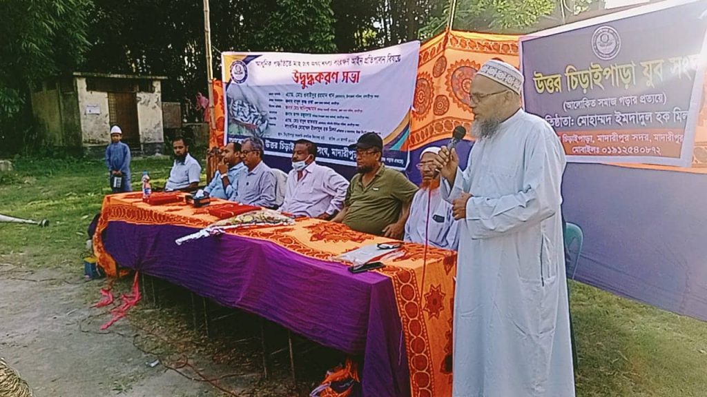 মাদারীপুরে আধুনিক পদ্ধতিতে মাছ চাষ এবং মৎস্য সংরক্ষণ আইন প্রতিপালন বিষয়ে উদ্বুদ্ধকরণ সভা অনুষ্ঠিত হয়েছে। রবিবার (৭ আগষ্ট) বিকেলে সদর উপজেলার চিড়াইপাড়া সরকারি প্রাথমিক বিদ্যালয় মাঠে এই সভা অনুষ্ঠিত হয়। এতে প্রধান অতিথি হিসেবে উপস্থিত ছিলেন সদর উপজেলা পরিষদের চেয়ারম্যান এ্যাডভোকেট ওবাইদুর রহমান খান।