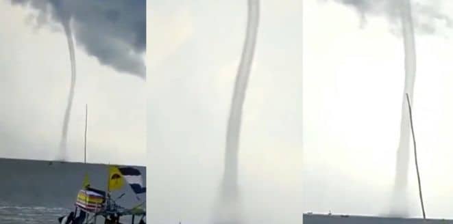 ভিডিও ধারণকারী মজিদ হোসেন উমর বলেন, আমি টাংকি মাছঘাটে একটি আড়তে চাকরি করি। দুপুরের খাওয়া শেষে নদীর পাড়ে বসে ছিলাম। হঠাৎ করে ঘাটের অদূরে নদীর পানি আকাশের দিকে উঠতে দেখা যায়। তাৎক্ষণিক ভিডিওটি করে পোষ্ট করেছি।