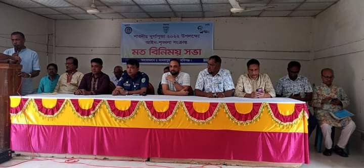 ইউনিয়ন চেয়ারম্যান আলাউদ্দিন, মাহবুব রহমান সোহাগ, পারুল আহমেদ, মীর খোরশেদ, মাসুদ খান, সৈয়দ সোহেল, পারভেজ চৌধুরী,পল্লী বিদ্যুৎ কর্মকর্তা সহকারী জেনারেল ম্যানেজার সৈয়দ আজহারুল ইসলাম, উপজেলা আনসার ভিডিপি কর্মকর্তা মোঃ কামরুল হাসান, উপজেলা পূজা উদযাপন কমিটির সভাপতি সুনীল দাস, সাধারণ সম্পাদক লিটন রায়, পৌর পূজা উদযাপন কমিটির সভাপতি প্রমোদ মালাকার, সাধারণ সম্পাদক দুলাল মোদক ছাড়াও ১টি পৌরসভা ও ১১টি ইউনিয়নের পূজা মন্ডপের পক্ষে প্রতিনিধিরা। বক্তারা, সনাতন ধর্মাবলম্বীদের সবচেয়ে বড় ধর্মীয় উৎসব সার্বজনীন শ্মারদীয় দূর্গাপূজা ।