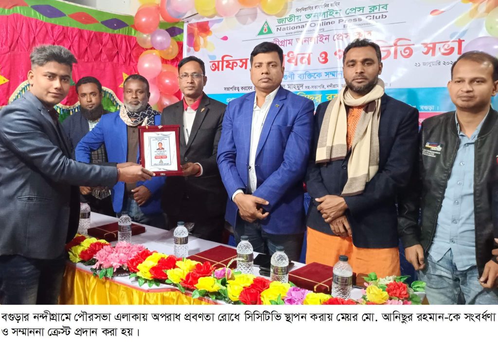 বগুড়ার নন্দীগ্রামে পৌরসভার মেয়র, থানার ওসি, জনপ্রতিনিধি, সাংবাদিকসহ পাঁচ গুণীজনকে বিভিন্ন কর্মকান্ড ও সফলতার স্বীকৃতি স্বরুপ সংবর্ধণা এবং সম্মাননা প্রদান করা হয়েছে।