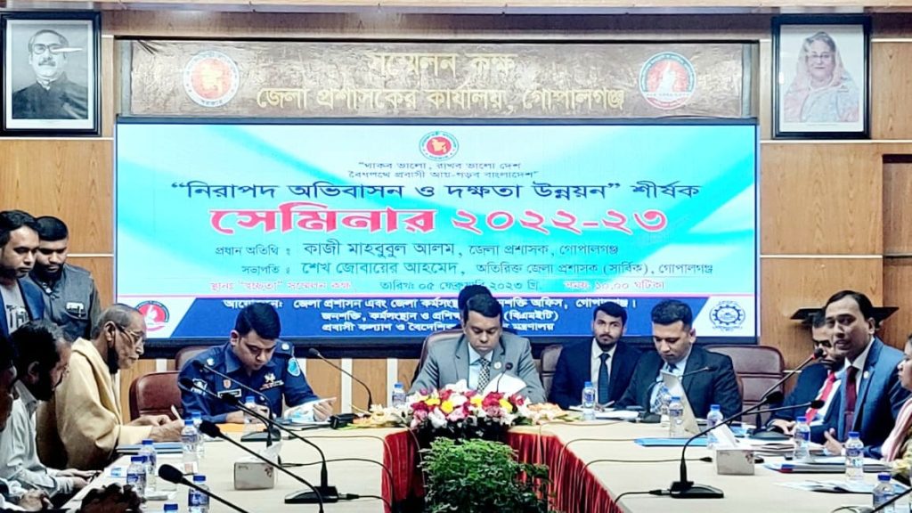‘থাকবো ভালো, রাখবো ভালো দেশ, বৈধপথে প্রবাসী আয়ে গড়বো বাংলাদেশ’ -এ স্লোগানকে সামনে রেখে গোপালগঞ্জে ‘নিরাপদ অভিবাসন ও দক্ষতা উন্নয়ন’ শীর্ষক সেমিনার অনুষ্ঠিত হয়েছে।