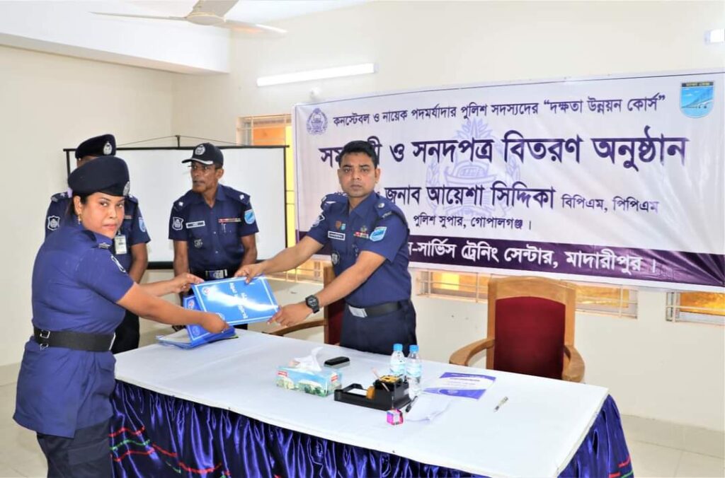 গোপালগঞ্জে কনস্টেবল ও নায়েক পদমর্যাদার পুলিশ সদস্যদের “দক্ষতা উন্নয়ন কোর্স” এর সমাপনী ও সনদ প্রদান