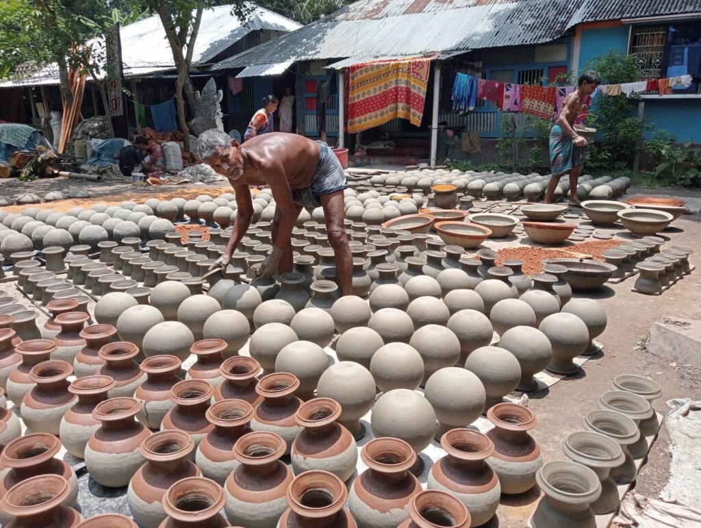 সরজমিনে গিয়ে দেখা যায়, মৃৎ শিল্পীরা মাটি দিয়ে তৈরি করছেন পুতুল, ফুলের টব, হাঁড়ি পাতিল,কলসি,ঝালা,ঝাজর,হাজ,হড়া,দধির পাতিল ও ব্যাংক ঘট সহ বিভিন্ন নৃত্য প্রয়োজনীয় জিনিসপত্র। পরে সেগুলোকে বিভিন্ন রংঙে সাজিয়ে তারা শহরের দোকান এবং বাসা বাড়িতে বিক্রয় করে থাকেন। বর্তমানে দেশের সব জায়গায়ই অ্যালুমিনিয়াম,প্লাস্টিক ও স্টিলের তৈরির ব্যবহার বেশী হওয়ায়, মাটির তৈরির পন্য বিক্রয় আজ খুবই কম।