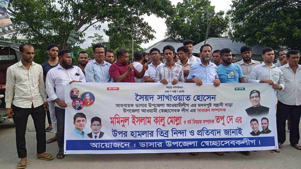 ডাসারে স্বেচ্ছাসেবক লীগ নেতাদের উপরে সন্ত্রাসী হামলা”আওয়ামী লীগ নেতার বিরুদ্ধে বিক্ষোভ