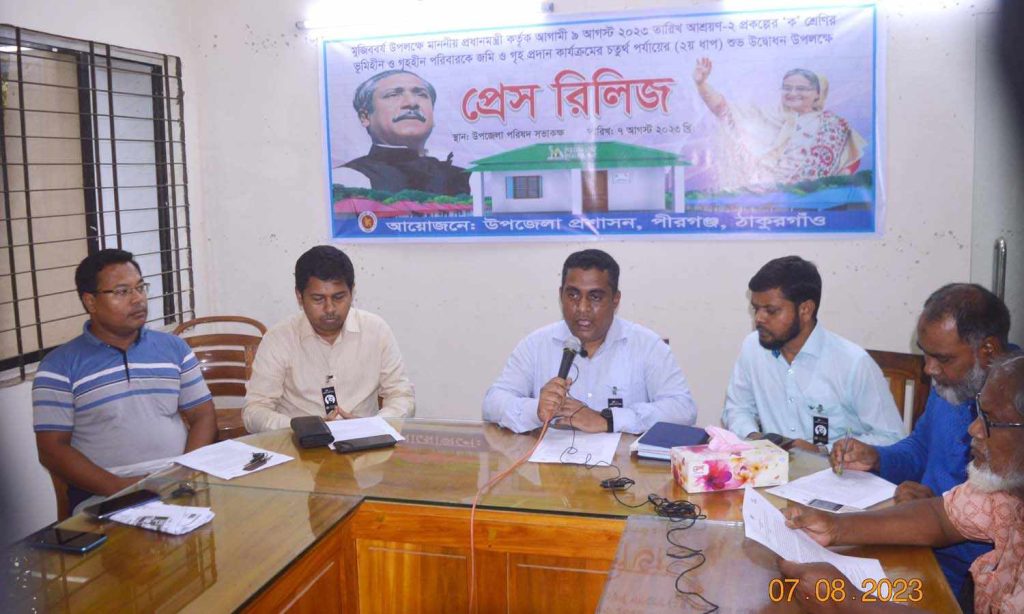 সোমবার বিকেলে উপজেলা প্রশাসন পরিষদ সভা কক্ষে এর আয়োজন করেন। পীরগঞ্জ উপজেলায় ১ম থেকে ৪র্থ ধাপ পর্যন্ত পৌর এলাকা সহ উপজেলায় মোট ১ হাজার ৮ শ ৫৬ টি উন্নত মানের রঙিন পাকা বাড়ি নির্মাণ করা হয়েছে। বর্তমানে এ উপজেলায় গৃহহীন বা ভূমিহীন না থাকায় গৃহহীন মুক্ত ঘোষণা করার সিদ্ধান্ত গৃহীত হয়।