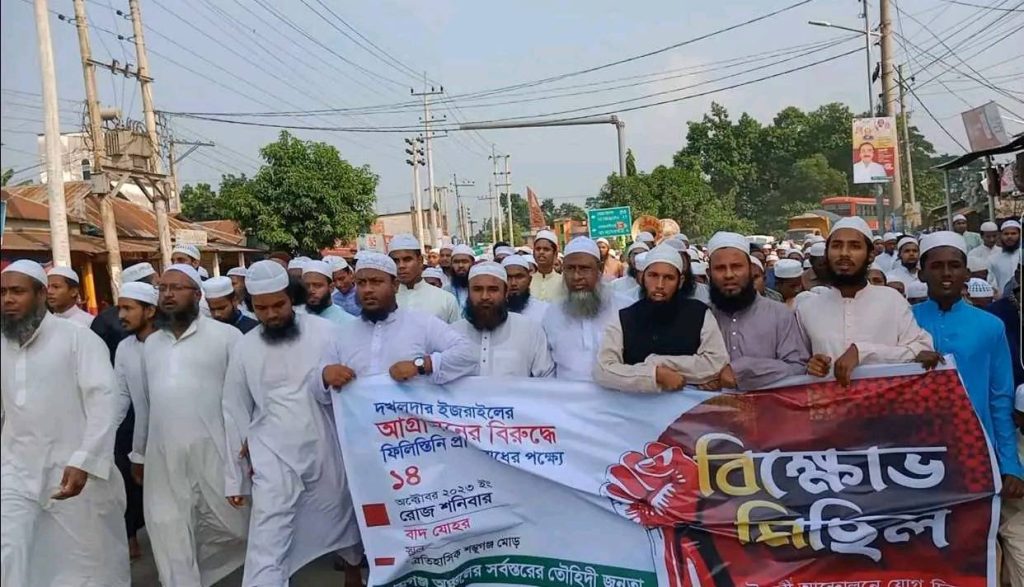 অদ্য ১৪ অক্টোবর রোজ শনিবার ময়মনসিংহ নগরীর শম্ভুগঞ্জ মোড়ে ইসরাইলকে বয়কট করে বিক্ষোভ মিছিল করেন সর্বস্তরের তাওহীদি জনতা।