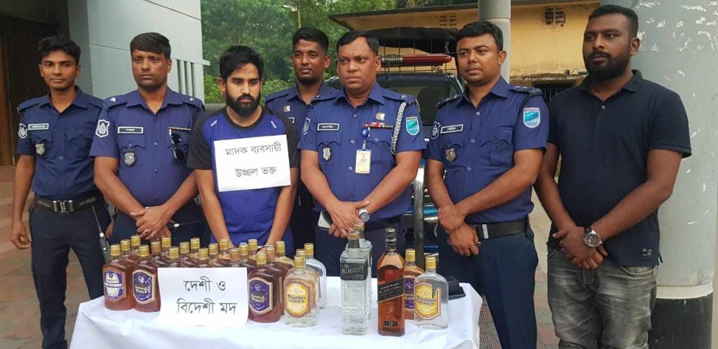 রবিবার (২৯ অক্টোবর) দুপুর ২ টায় উপজেলার টেকেরহাট হইতে গোপালগঞ্জ গামী আঞ্চলিক সড়কের চেকপোস্টের সামনে থেকে তাকে গ্রেফতার করা হয়। গ্রেফতারকৃত উজ্জল ভক্ত মুকসুদপুর থানার বানিয়ারচর গ্রামের নরেশ ভক্তের ছেলে। রবিবার বিকেলে রাজৈর থানার ভারপ্রাপ্ত কর্মকর্তা মোঃ আলমগীর হোসেন সাংবাদিকদের এ তথ্য নিশ্চিত করেন। এসময় পুলিশ উজ্জল ভক্তের হাতে থাকা সিমেন্টর তৈরি বাজারের ব্যাগের ভেতর থেকে ২৩ বোতল দেশি ও ৩ বোতল বিদেশি মদ জনসম্মুখে জব্দ করা হয়। গ্রেফতার উজ্জল ভক্তের বিরুদ্ধে মাদক ক্রয়-বিক্রয়ের অভিযোগ এনে সংশ্লিষ্ট ধারায় থানায় মামলা দায়ের করা হয়েছে।