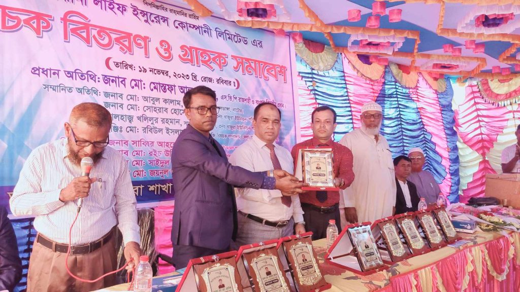 পরে বিভিন্ন ক্যাটাগরিতে সন্ধানী লাইফ ইনসুরেন্সে কোম্পানি লিমিটেড খাজুরা শাখার সদস্যদের মাঝে পুরুষ্কার বিতরণ ও ৬২ জন সদস্যকে ২২ লক্ষ টাকা চেক বিতরণ করা হয়।