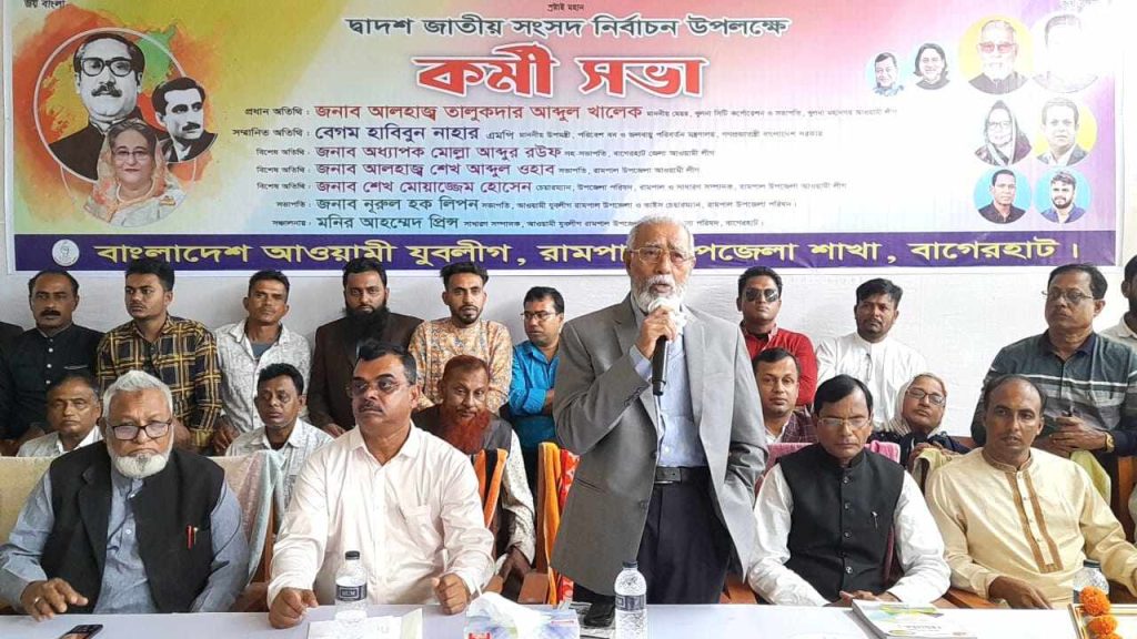 নির্বাচনে ভরাডুবির ভয়ে তারা নির্বাচনে অংশগ্রহণ করেনি। উপজেলা যুবলীগের সাধারণ সম্পাদক ও জেলা পরিষদের সদস্য মনির আহমেদ প্রিন্সের সঞ্চালনায় কর্মী সভায় আরো বক্তব্য দেন, জেলা আওয়ামী লীগের সহ-সভাপতি মোল্লা আব্দুল রউফ, প্রচার ও প্রকাশনা সম্পাদক নাজমুল কবির ঝিলাম, রামপাল উপজেলা চেয়ারম্যান ও উপজেলা আওয়ামী লীগের সাধারণ সম্পাদক সেখ মোয়াজ্জেম হোসেন, মহিলা ভাইস চেয়ারম্যান হোসনে আরা মিলি,বাইনতলা ইউপি চেয়ারম্যান ফকির আব্দুল্লা, সাবেক সদর ইউপি চেয়ারম্যান জামিল হাসান জামু প্রমুখ
