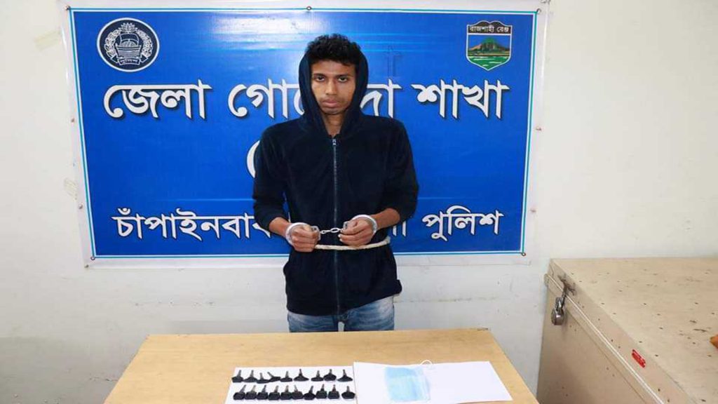 মোটরসাইকেলের ১৯ টি চাবি মহব্বত আলী ওরফে রয়েল নামে এক যুবক কে আটক করেছে চাঁপাইনবাবগঞ্জ জেলা গোয়েন্দা পুলিশ। চাঁপাইনবাবগঞ্জ পুলিশ সুপার কার্যালয় থেকে পাঠানো এক সংবাদ বিজ্ঞপ্তিতে অভিযানেরে তথ্য জানানো হয়।