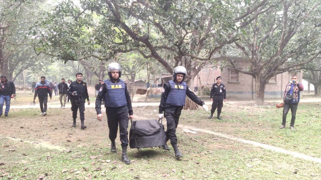 ঘটনাস্থলে প্রেস ব্রিফিং এ র্যাব-৫ ব্যাটালিয়ন অধিনায়ক লে. কর্নেল মুনীম ফেরদৌস জানান, আতঙ্ক ছড়াতে অতি সম্প্রতি চাঁপাইনবাবগঞ্জ নির্বাচন কমিশনের অফিসসহ চাঁপাইনবাবগঞ্জ জেলার বিভিন্ন স্থানে দুস্কৃতিকারীরা ককটেল বিস্ফোরণ ঘটায়।