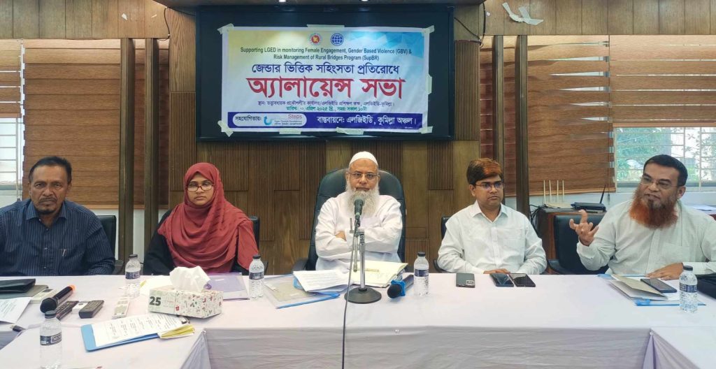 নারীর প্রতি সহিংসতা প্রতিরোধে মতবিনিময় সভা করেছে স্থানীয় সরকার প্রকৌশল বিভাগ কুমিল্লা অঞ্চল। মঙ্গলবার এলজিইডি কুমিল্লা অঞ্চলের মিলনায়তনে এ্যালায়েন্স গঠন ও মতবিনিময় সভা অনুষ্ঠিত হয়েছে।