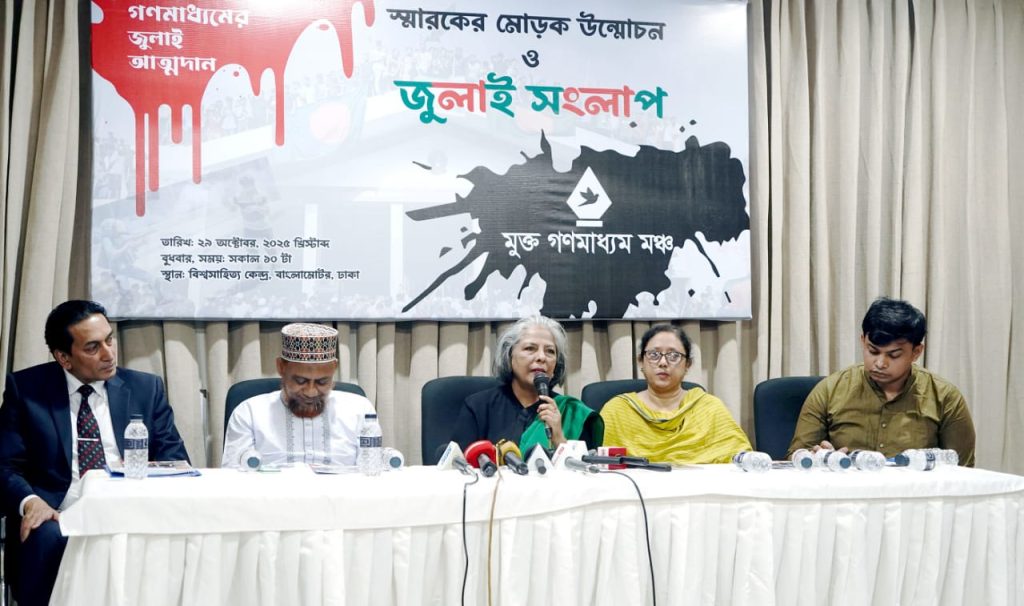 বুধবার (২৯ অক্টোবর) রাজধানীর একটি মিলনায়তনে মুক্ত গণমাধ্যম মঞ্চ আয়োজিত ‘গণমাধ্যমের জুলাই আত্মদান’ স্মারকের মোড়ক উন্মোচন ও জুলাই সংলাপ অনুষ্ঠানে প্রধান অতিথির বক্তবে তিনি এ কথা বলেন।