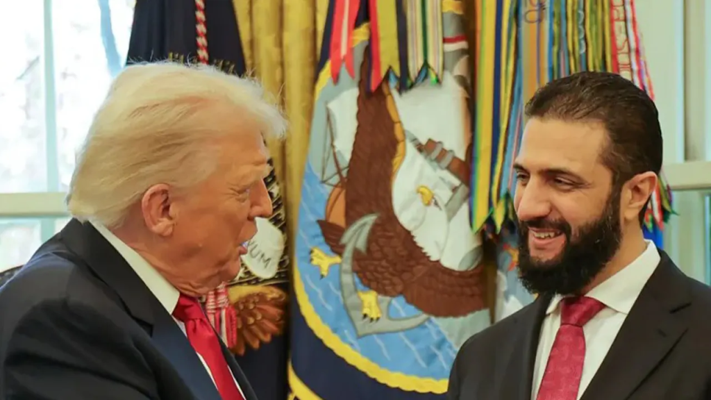 বৈঠক শেষে ট্রাম্প বলেন, “আহমেদ আল শারা এক কঠিন জায়গা থেকে এসেছে, কিন্তু সে দৃঢ়চেতা মানুষ। আমরা চাই সিরিয়া সফল হোক।”