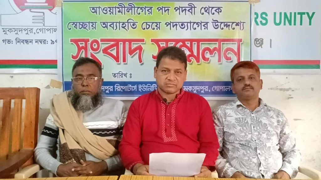 সংবাদ সম্মেলন করে মুকসুদপুরে আওয়ামী লীগের ৩ নেতার পদত্যাগ