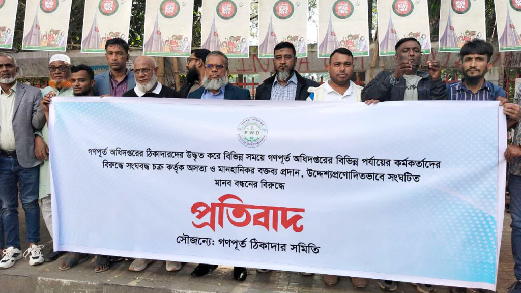 তিনি প্রশাসনের প্রতি আহ্বান জানিয়ে বলেন, সংশ্লিষ্টদের বিরুদ্ধে আইনানুগ ব্যবস্থা গ্রহণের দাবি জানান। তিনি আরও উল্লেখ করেন, গণপূর্ত ঠিকাদার সমিতি সারাদেশে বিস্তৃত ও সংগঠিত একটি প্রতিষ্ঠান, যেখানে নেতৃত্ব দিচ্ছেন তালিকাভুক্ত প্রথম শ্রেণির ঠিকাদাররা। যারা অভিযোগ করছে, তারা কেউই ঠিকাদার নয়। ভবিষ্যতে আবার কেউ মানববন্ধনের নামে বিভ্রান্তি ছড়ালে গণমাধ্যমকর্মীদের সতর্ক থাকতে এবং প্রয়োজন হলে সমিতির সঙ্গে যোগাযোগ করার অনুরোধ জানান। সমিতির নিজস্ব অফিস গণপূর্ত অধিদপ্তরে রয়েছে।