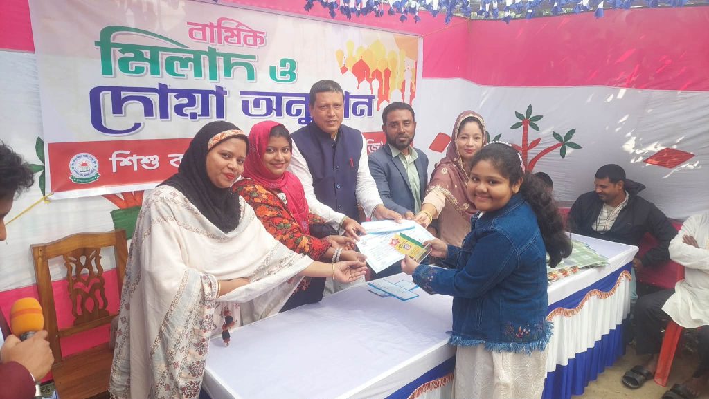 দোয়া অনুষ্ঠান শেষে আসন্ন বৃত্তি পরীক্ষায় অংশগ্রহণকারী ছাত্র-ছাত্রীদের শুভেচ্ছা উপহার প্রদান করা হয়।