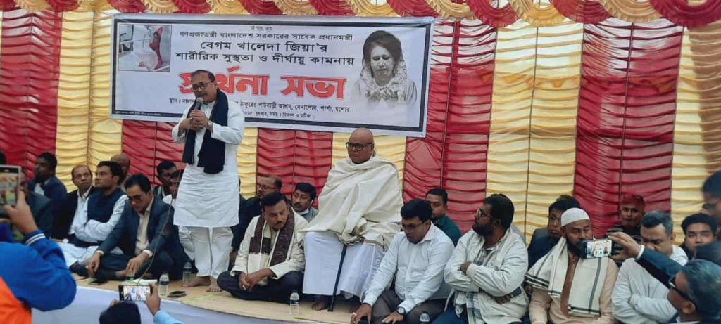তিন বারের সাবেক প্রধানমন্ত্রী, গনতন্ত্রের মা, বিএনপির চেয়ারপারসন বেগম খালেদা জিয়ার শারীরিক সুস্থতা ও দীর্ঘয়ু কামনায় বিশেষ প্রার্থনা সভা আজ বুধবার বিকালে নামাচার্য শ্রী শ্রী ব্রক্ষ হরিদাস ঠাকুরের পাটবাড়ী আশ্রম বেনাপোলে অনুষ্ঠিত হয়েছে।