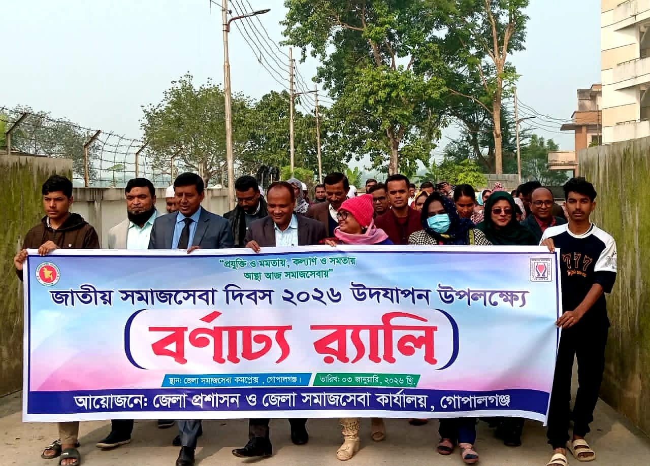গোপালগঞ্জে যথাযোগ্য মর্যাদায় জাতীয় সমাজসেবা দিবস- ২০২৬ পালিত হয়েছে। দিবসটি উপলক্ষে শনিবার (৩ জানুয়ারি) এক বর্ণাঢ্য র্যালি ও আলোচনা সভার আয়োজন করা হয়।