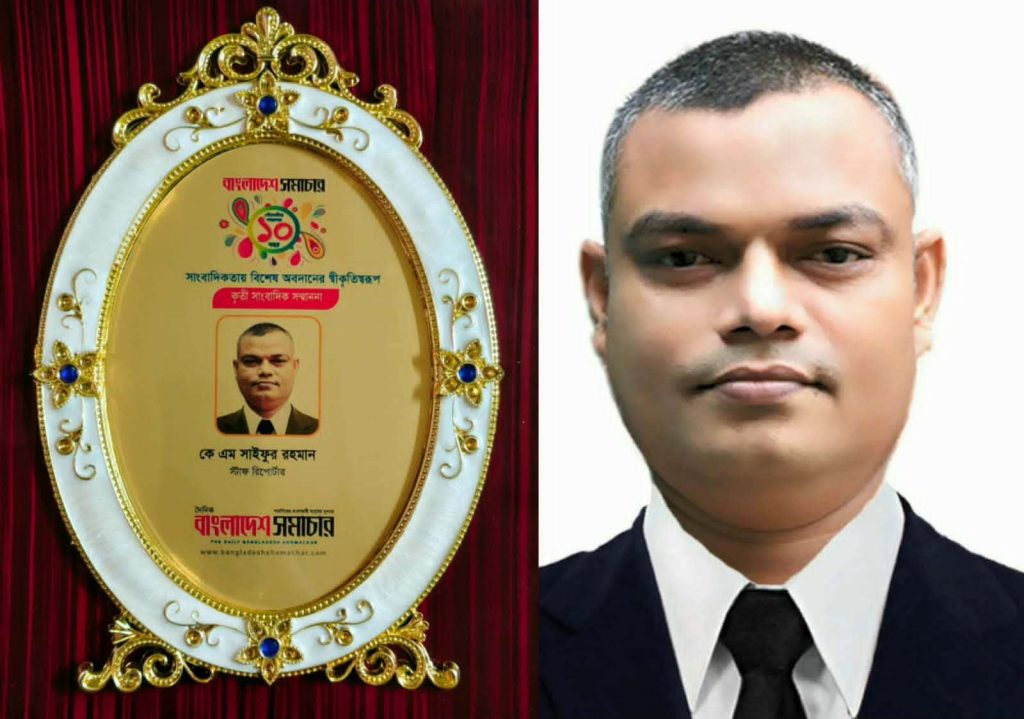 সাংবাদিকতায় সততা ও নিষ্ঠার সাথে দীর্ঘদিন যাবত পেশাগত দক্ষতার স্বীকৃতি হিসেবে সফেন -বাংলাদেশ সমাচার -২০২৫ সম্মাননা ক্রেস্ট পেলেন গোপালগঞ্জ প্রেসক্লাবের সাংগঠনিক সচিব, মানবাধিকার ও গণমাধ্যমকর্মী কে এম সাইফুর রহমান।