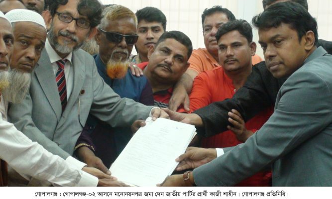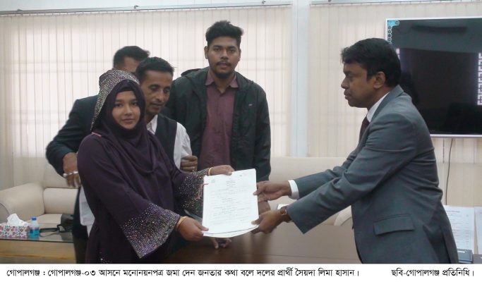 এদিকে, গোপালগঞ্জ-০২ থেকে জাতীয় পার্টি মনোনীত প্রার্থী কাজী শাহীন এবং গোপালগঞ্জ-০৩ আসনে জানতার কথা দল থেকে সৈয়দা লিমা হাসান জেলা রিটার্নিং কর্মকর্তা ও জেলা প্রশাসক কাজী মাহবুবুল আলমের কাছে মনোনয়নপত্র জমা দেন।