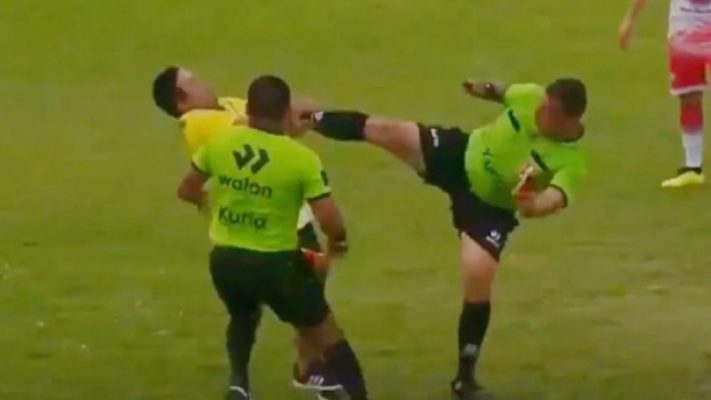 পেরুর একটি ফুটবল প্রতিযোগিতায় ঘটেছে এক চমকপ্রদ ঘটনা। সাধারণত খেলোয়াড়রা উত্তেজনা ও রাগের কারণে শারীরিক সংঘর্ষে জড়ান, তবে এই ঘটনায় মুখোমুখি হন কোচ এবং রেফারি। ম্যাচের মাঝে, কোচ একটি বোতল হাতে নিয়ে মাঠে ঢুকে রেফারিকে আঘাত করতে উদ্যত হন, কিন্তু পুরোপুরি সফল হননি। রেফারি খেলার নিয়মের বাইরে গিয়ে ‘কুংফু কিক’ মেরে কোচকে মাটিতে ফেলে দেন।